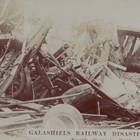 An album containing approximately 203 postcards of railway interest, predominantly Southern, N.B.R. and Caledonian Railways including photographic postcards of locomotives, occasionally in engine sheds or at stations, and postcards titled 'Galashiels Railway Disaster, Sep 1908, Northern British Railway' (4), 'Eliot Junction Disaster' (2), 'Arbroath Railway Disaster' and four printed postcards titled 'Kirtlebridge Railway Disaster, Apr 6th 1906'.