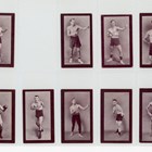 An album of cigarette and trade cards of sport interest, including 34 Wills Scissors ‘British Army Boxers’, 20 Ogden ‘Pugilists & Wrestlers, second series’, a set of 64 D. Cummings ‘Famous Fighters’, a set of 11 medium-size The Rocket ‘Famous Knock-outs’ and a set of 50 Burstein, Isaacs & Co ‘Famous Prize-Fighters’ including Jack Johnson.