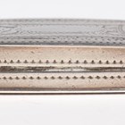 A George III silver rectangular vinaigrette, the hinged lid with engraved decoration, the gilt interior with pierced and engraved hinged grille, Birmingham 1809 by Joseph Willmore, length 2.9cm, together with a George III silver oval vinaigrette, the hinged lid with reeded band, the gilt interior with pierced detachable grille, unmarked, length 4cm.