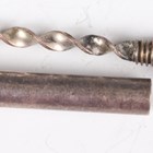 A small collection of silver and plated items, including hinge mounts, chains, watch cases and a silver and enamelled shield shaped pendant fob.