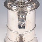 A George III silver tankard of tapering cylindrical girdled form, the domed hinged lid and pierced thumbpiece above a scroll handle terminating in a heart shaped motif, monogram engraved, Newcastle 1788 by John Langlands I & John Robertson I, weight 708.8g, height 18.5cm.
