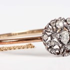 A late Victorian gold, silver and diamond oval hinged bangle in an openwork pierced panel shaped design, mounted with variously cut diamonds, inscribed ‘Sep 3rd 1891’, unmarked weight 11.9g, principal diamond weight approx 0.75ct, inside width 5.5cm, with a case.