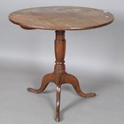 An early Victorian provincial oak circular tripod table, height 73cm, diameter 80cm.