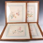A set of four Chinese Canton export watercolour and gouache paintings on paper, early 19th century, each painted with a still life study of fruit and flowers including Buddha's hand citron, persimmon, roses, peach and pomegranate, approx 30cm x 25cm, framed and glazed.