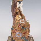 A Japanese Satsuma porcelain figure of a seated Buddha, Taisho period, modelled with a flame mandala, on a rectangular base, enamelled and gilt with foliate decoration, height 25cm.