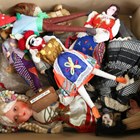 A good collection of composition plastic and fabric dolls, mostly wearing national costumes, and a small collection of homemade doll's furniture.