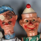 A Gabrielle Designs Paddington Bear wearing a red duffle coat and Dunlop boots, height 49cm, together with two mohair teddy bears, a Pelham Puppet Type LS Mexican Girl puppet, boxed, two other Pelham Puppets and five glove puppets with composition heads.