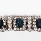 A greenish blue sapphire and colourless gem set cluster necklace, probably Ceylonese, mounted with a row of five cut cornered rectangular sapphires, unmarked, length 41.5cm (one colourless gem lacking), a silver charm bracelet, a silver and treated ruby ring, three further rings, two necklaces, two pendants, a brooch, a three row coral necklace and ten various odd earrings.