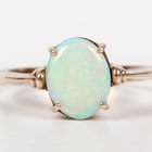 A gold ring, claw set with an oval opal, detailed ‘375’, weight 2.3g, ring size approx O.