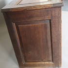 An early 18th century oak panelled coffer, the lid with original wire hinges, height 72cm, width 135cm, depth 51cm.