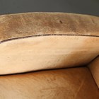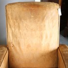 A pair of mid-20th century French brown leather armchairs, on tapering legs, height 90cm, width 75cm, depth 90cm.