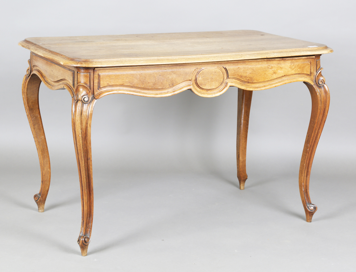 A late 19th century French walnut centre table, fitted with a single frieze drawer, height 74cm, width 116cm, depth 69cm.