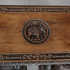 An early 20th century Indian hardwood table, the rectangular top raised on a pair of finely carved elephant supports, height 61cm, width 77cm, depth 66.5cm.