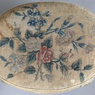 A pair of late 19th century Neoclassical Revival painted and gilt oval stools with needlework seats, height 20cm, width 37cm, depth 27cm.