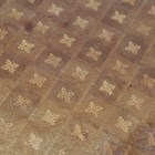 A French mahogany and gilt metal mounted circular guéridon, the top inlaid with an overall lattice of flowerheads, height 68cm, diameter 68cm.