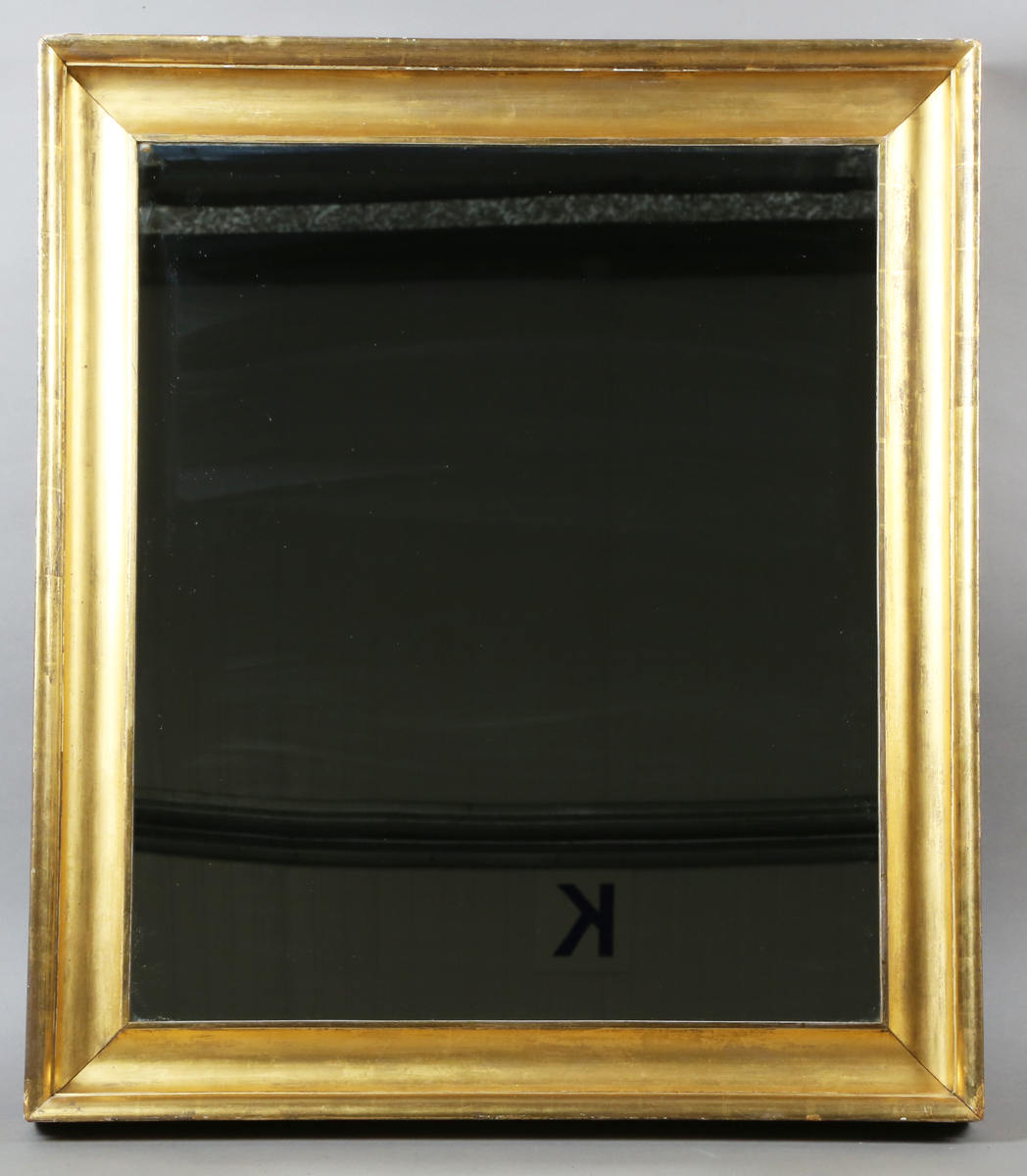 A 19th century giltwood rectangular wall mirror, the frame of wide section, height 103cm, width 87cm (later glass).