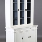 A modern French style white painted bookcase cabinet, height 205cm, width 112cm, depth 55cm, together with a matching white painted dresser base, fitted with drawers and doors, height 80cm, width 160cm, depth 50cm.