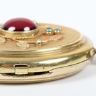 A gold, garnet, turquoise and seed pearl oval pendant locket, the front collet set with an oval cabochon garnet within a foliate surround, unmarked, weight 23.3g, length 6.4cm.
