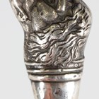 An Edwardian silver handled novelty button hook, the handle in the form of a dog's head with inset pink glass eyes, Birmingham 1907, together with three other similar button hooks and another with coquilla nut handle.