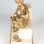 A 19th century gilt bronze and white marble figure of a seated classical youth holding an amphora, raised on a stepped plinth, width 15cm.