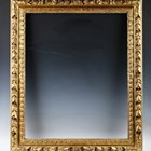 An 18th century carved gilt frame of wide section with inner bellflower frieze and outer imbricated laurel leaf, berry and flower head frieze, rebate 86cm x 70.5cm.