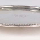 A George III Scottish silver circular card salver, crest engraved with a shield within a beaded rim, raised on cast scallop shell feet, Edinburgh 1802 by William & Patrick Cunningham, weight 381.3g, diameter 21.5cm.
