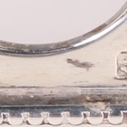 A George V silver rectangular six-division toast rack with pierced gallery base, on bun feet, Birmingham 1930 by Atkin Brothers, length 11.5cm, a Dutch silver tea strainer, embossed with cherubs, import mark London 1932 by T.C. & Sons Ltd, length 16.5cm, a silver tasse-du-vin with twin snake loop handle, London 1962 by C.J. Vander Ltd, length 10.4cm, a silver sauceboat, Sheffield 1931, and a silver trencher salt, unmarked, total weight 457g.