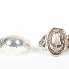 A group of silver and silver mounted jewellery, including some Scandinavian, comprising a brooch, detailed ‘OW 925S’, width 5.9cm, a pair of malachite pendant earrings, detailed ‘AJ 925 Denmark’, a collar necklace, detailed ‘925’, a turquoise ring, three further rings, a piece of amber, the mount detailed ‘Fausing Sterling Denmark’, and a caddy spoon, detailed ‘Sterling’, total weight 97.3g.