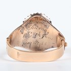 A gold, amber and half-pearl cluster ring, mounted with the oval cabochon translucent amber within a surround of half-pearls, the reverse engraved ‘Jane Durno? obt 12 June 1801 aet 55’, the hinged shank with a snap clasp, unmarked, weight 4.3g (shank slightly misshaped).