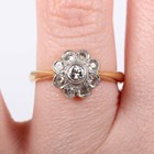 An 18ct gold and diamond cluster ring, collet set with the principal circular cut diamond within a surround of eight variously cut diamonds, Sheffield 2002, weight 4.5g, ring size approx L1/2.