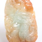 A varicoloured jade pendant, carved with a dragon and phoenix, length 5.2cm, with a 9ct gold multiple link neckchain, weight 3.2g, length 45.5cm, a coral bead and turquoise pendant necklace, the pendant formed as a lychee, a coral bead, turquoise and mother-of-pearl pendant necklace, probably Chinese, the pendant formed as a lock, a branch coral necklace and various bead necklaces.