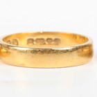A 22ct gold wedding ring, London 1954, ring size approx J, another 22ct gold wedding ring, Birmingham 1955, total weight 5.9g, and a 9ct gold decorated wedding ring, weight 1.8g.