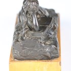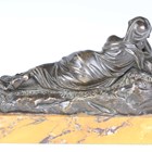 A 19th century French bronze figure of a recumbent maiden reading a book, raised on a Sienna marble plinth, length 14.5cm.