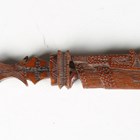 An 18th century Continental boxwood knitting sheath, the handle carved in the form of a female standing figure, length 31.5cm.