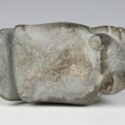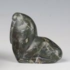 A mid/late 20th century Inuit green stone carving of two figures, indistinctly inscribed to underside, height 11cm, together with another model of a walrus, height 7cm.