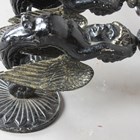 A pair of cast iron wall-mounted pricket candlesticks with wing cherub supports, height 61cm, width 28cm.