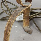A pair of late 20th century gilded wrought metal table lamps, height 86cm, together with a set of three naturalistic wrought metal wall lights, height 70cm.