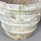 A pair of 20th century cast composition stone garden urns of tapering circular form, height 43cm, diameter 53cm (faults).