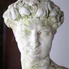 A large late 20th century cast composition stone garden figure of David, raised on a substantial classical capital plinth, height 170cm (some faults).