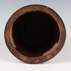A Chinese bamboo brushpot, 20th century, the exterior carved in low relief with lotus opposing four characters, height 16.2cm.