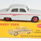 Two Dinky Toys cars, comprising No. 175 Hillman Minx in blue and grey and No. 176 Austin A105 in grey with red panel line, both boxed with correct colour spots (minor paint chips, both boxes have tape repairs).