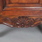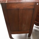 A pair of large 20th century French walnut bedside cabinets with rouge marble tops above drawers and panelled doors, height 89cm, width 61cm, depth 42cm.