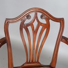A George III mahogany pierced splat back elbow chair with a gilt damask drop-in seat, height 92cm, width 57cm.