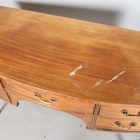 A late 19th century Neoclassical Revival mahogany serpentine fronted serving table, the frieze and legs inlaid with bellflower swags and seated griffons, height 75cm, width 126cm, depth 58cm, together with an early 20th century mahogany serving table, height 82cm, width 121cm, depth 57cm.