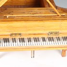 An early 20th century carved softwood novelty whisky decanter, modelled in the form of a Scotsman, possibly for Asprey & Co, height 26.5cm, together with a scratch-built matchstick music box model of a grand piano, length 28cm.