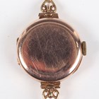 A Bebe 9ct gold circular cased lady’s wristwatch, the jewelled movement detailed ‘Swiss Made’, the signed dial with black Arabic numerals, London 1923, on an associated 9ct gold bracelet with heart shaped links and foldover clasp, Birmingham 1990, total weight 17.8g, case diameter 2.3cm, total length 19.5cm.