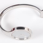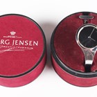 A Georg Jensen 'Torun' stainless steel lady's bangle watch, Design No. 336, designed by Vivianna Torun Bülow-Hübe, with quartz movement and mirrored dial, the case back detailed 'Georg Jensen Denmark Design 336 Torun' and numbered '55166', the tapered open bangle with T-bar terminal, detailed 'XS', case diameter 2.7cm, with original cylindrical box and cover.