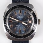 A Tara Selfwinding chrome plated front and steel backed gentleman's diver's wristwatch, the signed blue dial with baton hour markers, centre seconds and date aperture, the case with rotating black bezel, the case back numbered '638', case width 3.7cm.