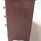 A Victorian mahogany bowfront chest of oak-lined drawers with turned handles, on bracket feet, height 102cm, width 104cm, depth 52cm.