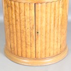 An Art Deco burr walnut demi-lune drinks cabinet, in the manner of the Epstein Brothers, the four hinged doors with wide vertical reeding, the upper section with an etched mirror interior, height 160cm, width 92cm, depth 45cm (some minor faults).